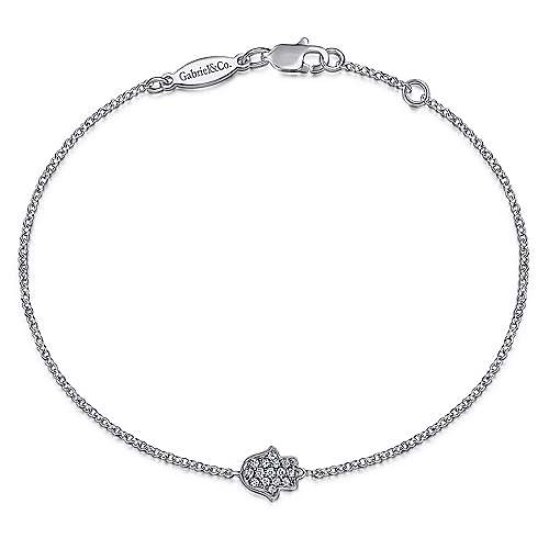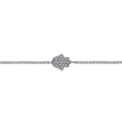 14K White Gold Chain Bracelet with Pavé Diamond Hamsa