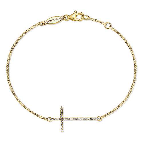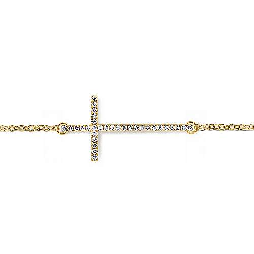 14K Yellow Gold Chain Bracelet with Diamond Cross