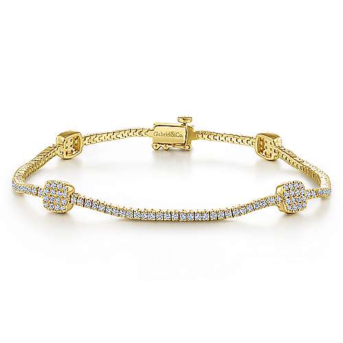 14K Yellow Gold Diamond Tennis Bracelet with Diamond Cube Stations