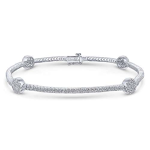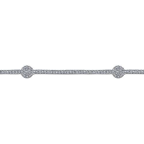 14K White Gold Diamond Tennis Bracelet with Round Cluster Stations