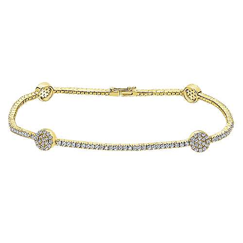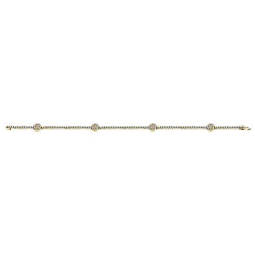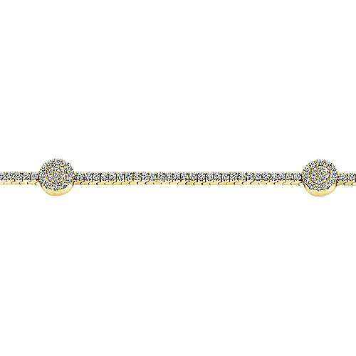 14K Yellow Gold Diamond Tennis Bracelet with Round Cluster Stations