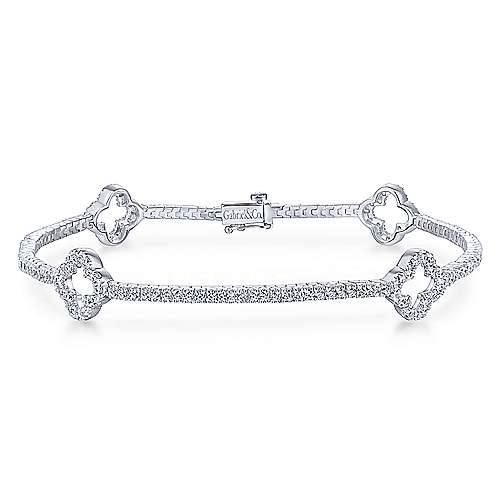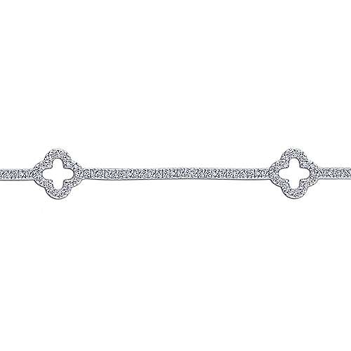 14K White Gold Diamond Tennis Bracelet with Clover Stations