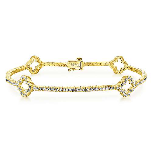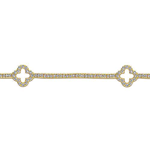 14K Yellow Gold Diamond Tennis Bracelet with Clover Stations
