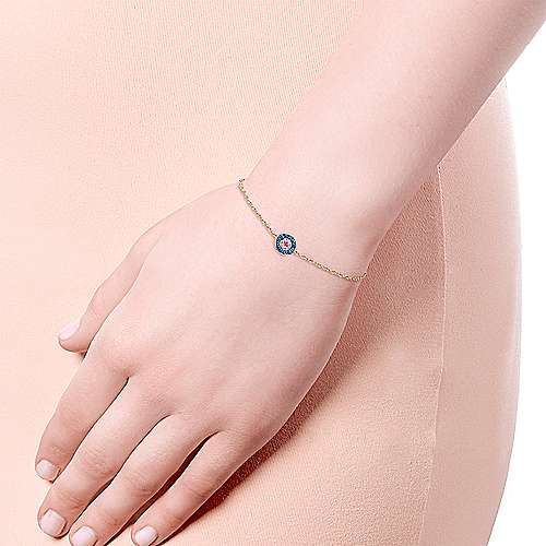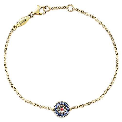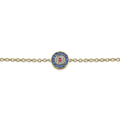 14K Yellow Gold Round Sapphire, Diamond and Ruby Evil Eye Bracelet