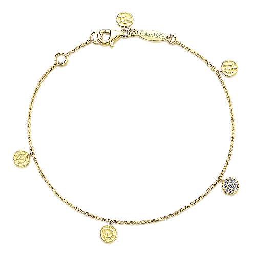 14K Yellow Gold Chain Bracelet with Hammered and Pavé Diamond Discs