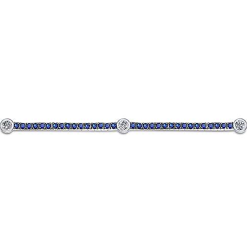 14K White Gold Sapphire Tennis Bracelet with Round Diamond Stations