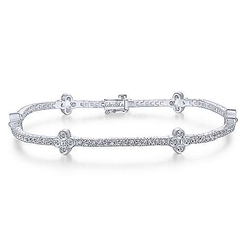 14K White Gold Tennis Bracelet with Quatrefoil Diamond Stations