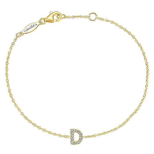 14K Yellow Gold Chain Bracelet with "D" Diamond Initial