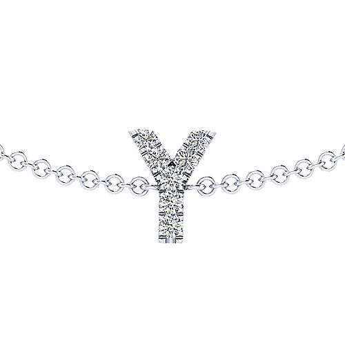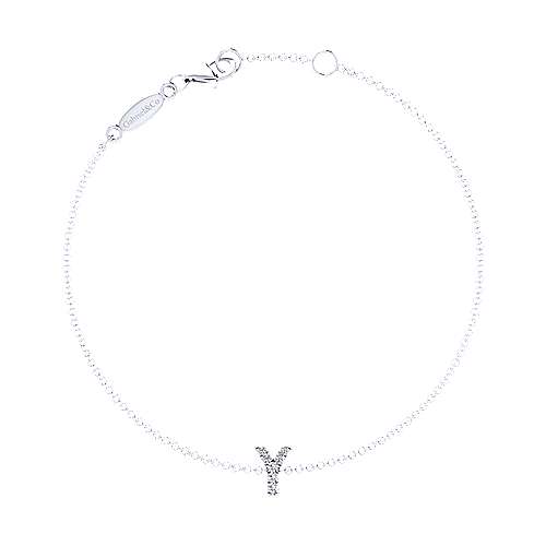 14K White Gold Chain Bracelet with "Y" Diamond Initial