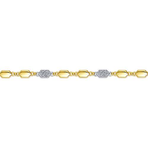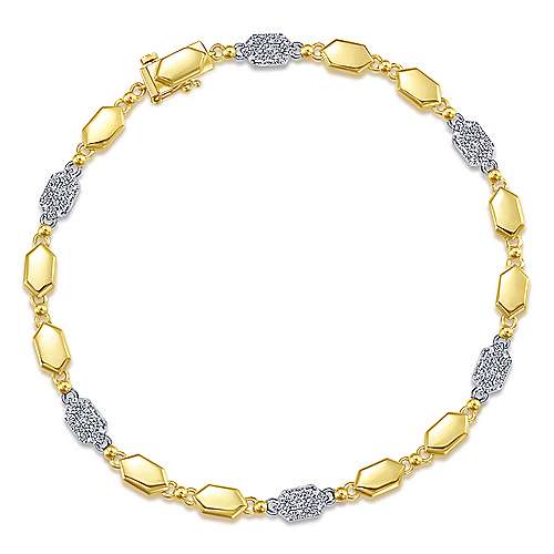 14K Yellow and White Gold Hexagon and Pavé Diamond Tennis Bracelet