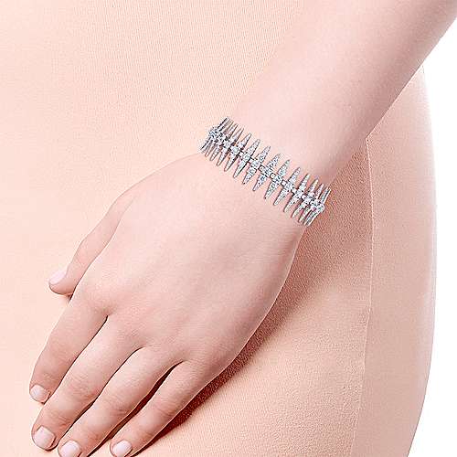 18K White Gold Diamond Spikes Tennis Bracelet