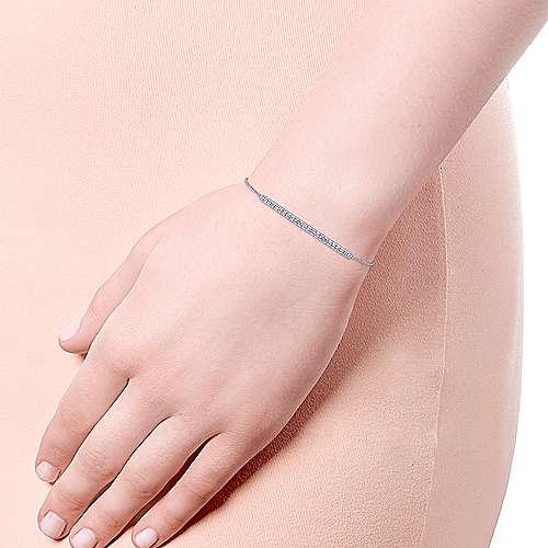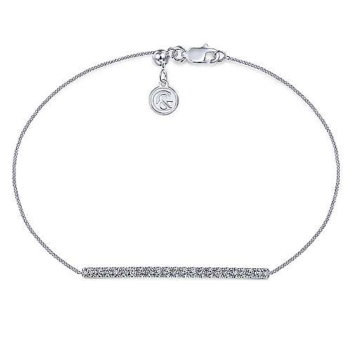 14K White Gold Chain Bracelet with Pavé Diamond Bar