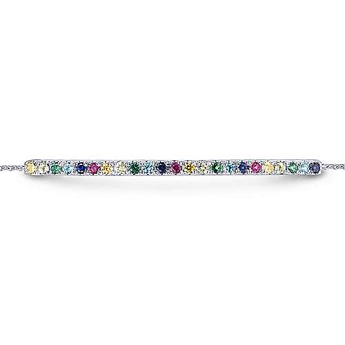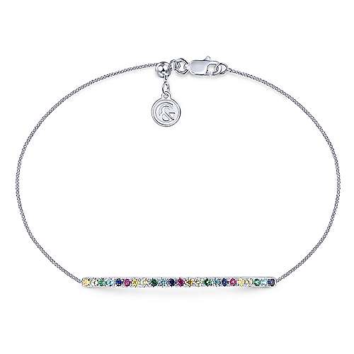 14K White Gold Chain Bracelet with Rainbow Color Stone Bar