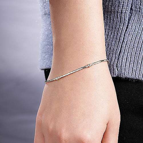 14K Yellow Gold Tennis Bracelet with Bezel Set Diamond Stations