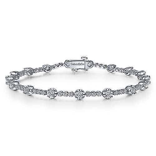 14K White Gold Buttercup Set Diamond Tennis Bracelet