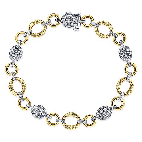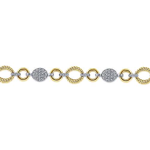 14K Yellow-White Gold Plain and Twisted Rope Link Bracelet with Pavé Diamond Cluster Stations