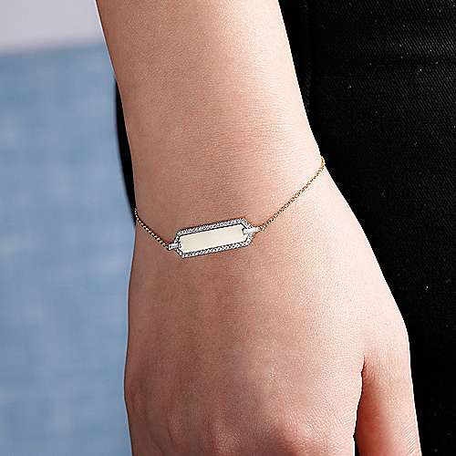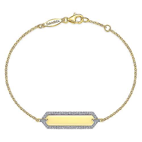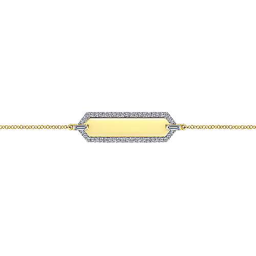 14K Yellow Gold Chain Bracelet with Rectangular Diamond Framed Engravable ID