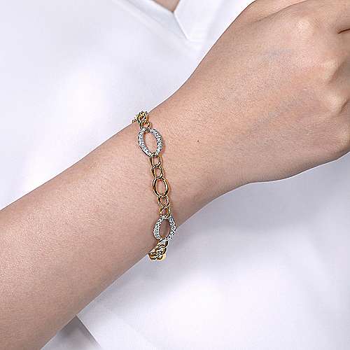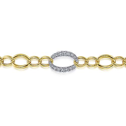 14K Yellow-White Gold Chain Link Bracelet with Diamond Pavé Oval Link Stations