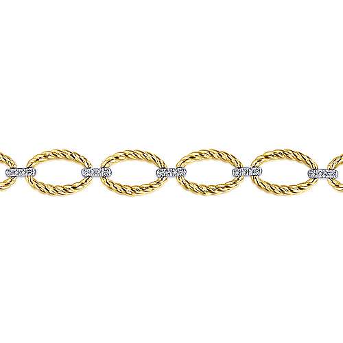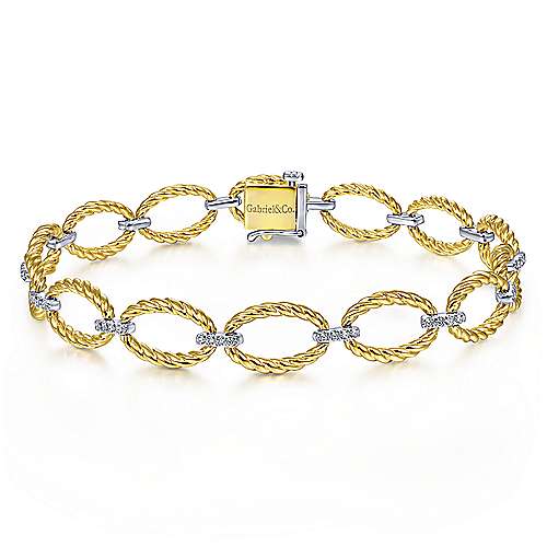 14K Yellow-White Gold Twisted Rope Oval Link Bracelet with Diamond Connectors