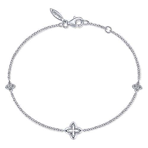 925 Sterling Silver Clover and White Sapphire Bracelet