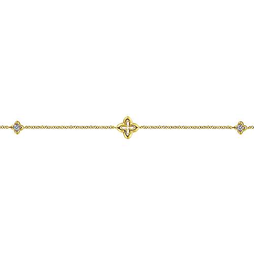 14K Yellow Gold Chain Bracelet with White Sapphire Clover Stations