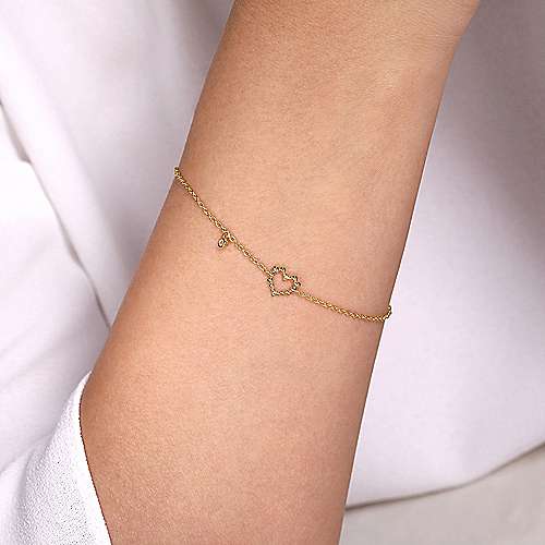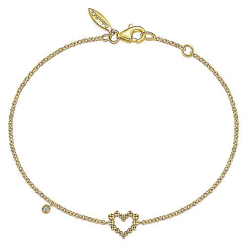 14K Yellow Gold Heart Bracelet with Diamond Bezel Charm