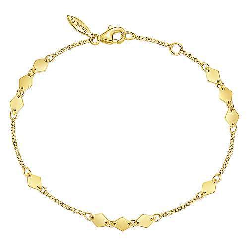 14K Yellow Gold Chain Bracelet with Flat Rhombus Stations