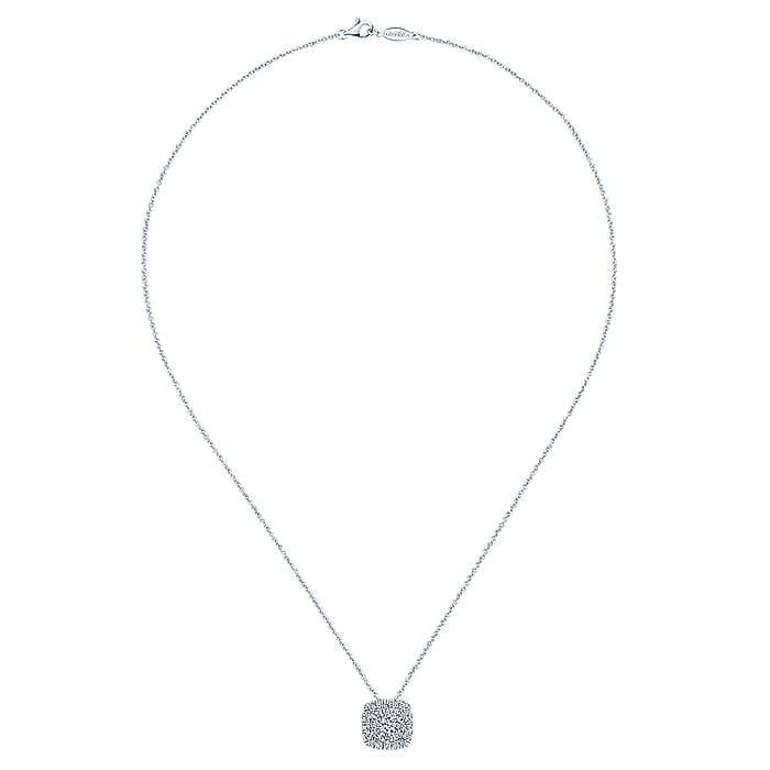 Radiant Softened Square Pendant With Sparkling Diamonds on 14k White Gold Necklace