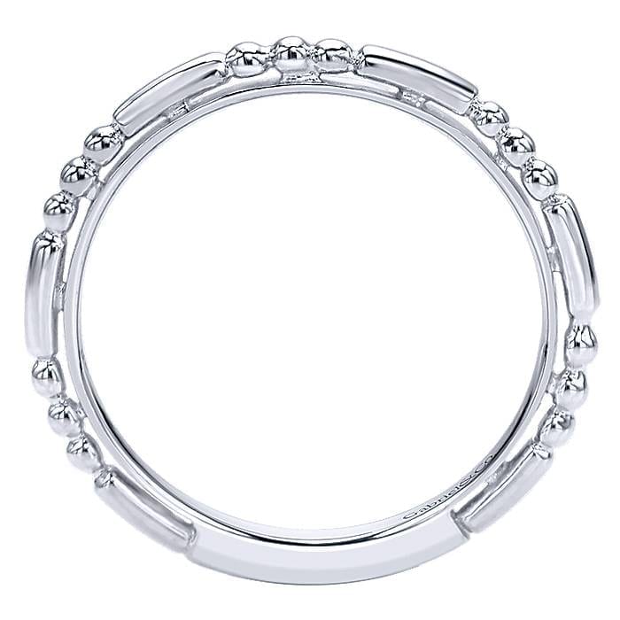 Sculpted Shapes Lend A Beaded Effect To The Gleaming 14K White Gold Band on One-of-a-Kind Stackable Ring