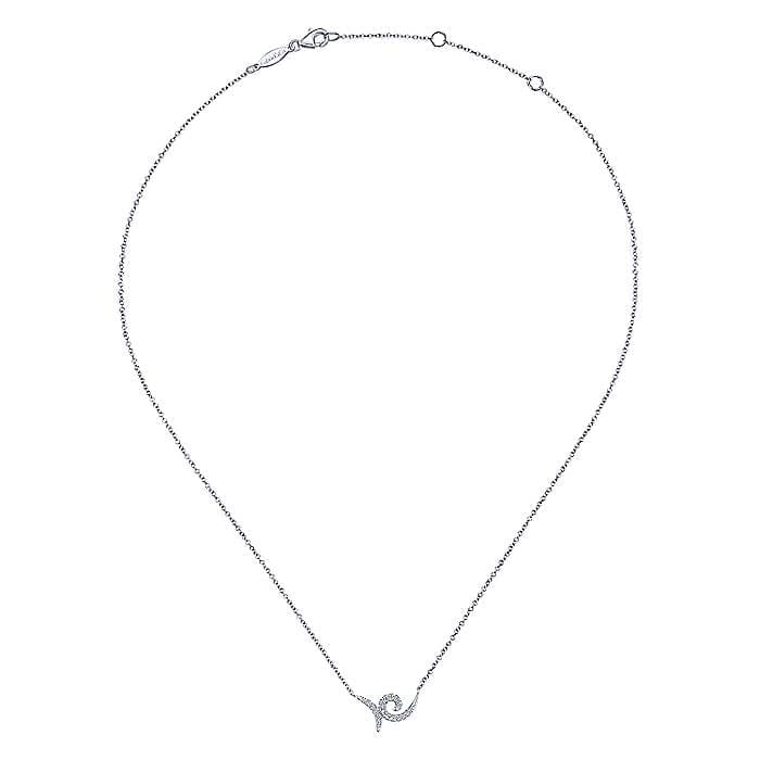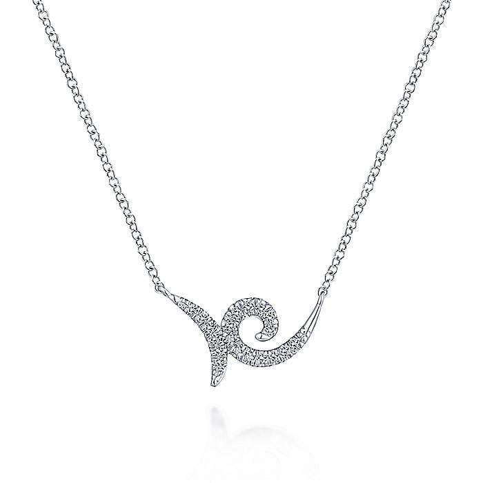 Sculptural Swirling Pendant Encrusted In Dazzling .1Ct Pave Diamonds on Simple 14K White Gold Cable Chain