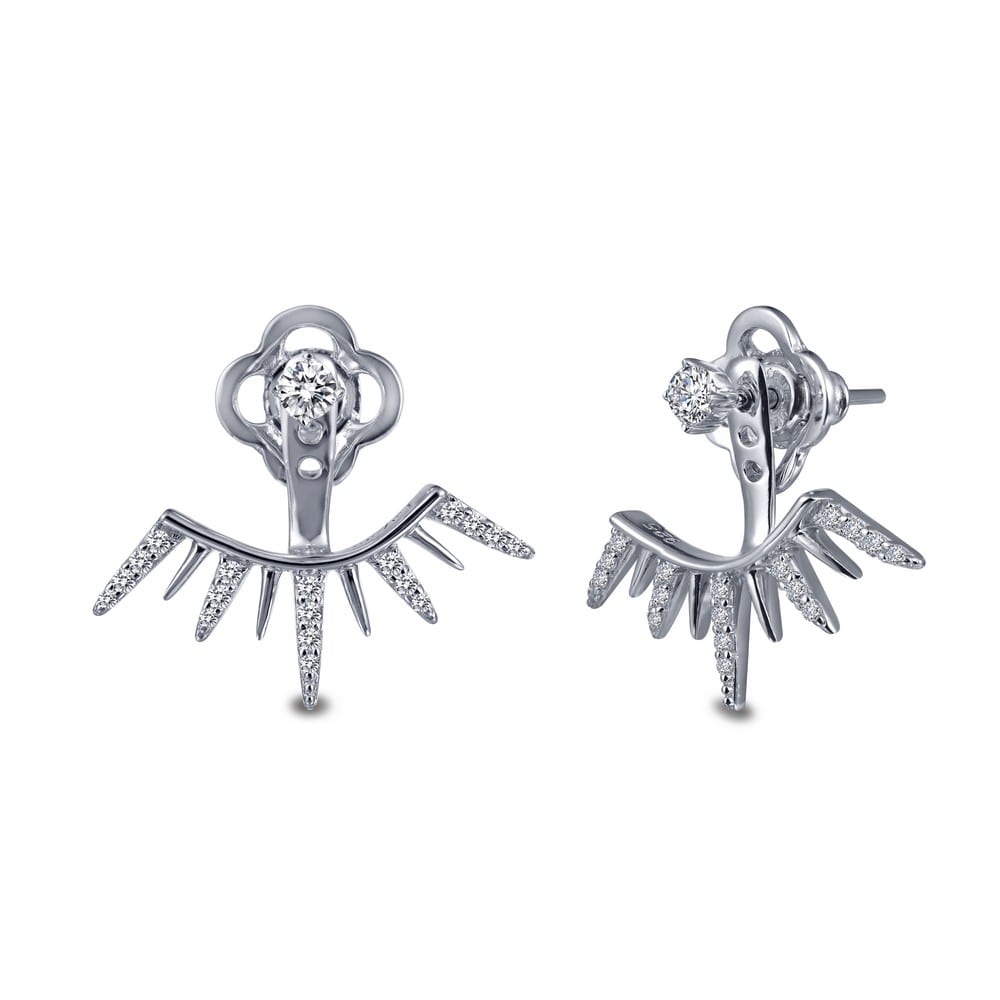 shimmering ear climber with post jacket earrings are set with SIMULATED diamonds in sterling silver bonded with platinum