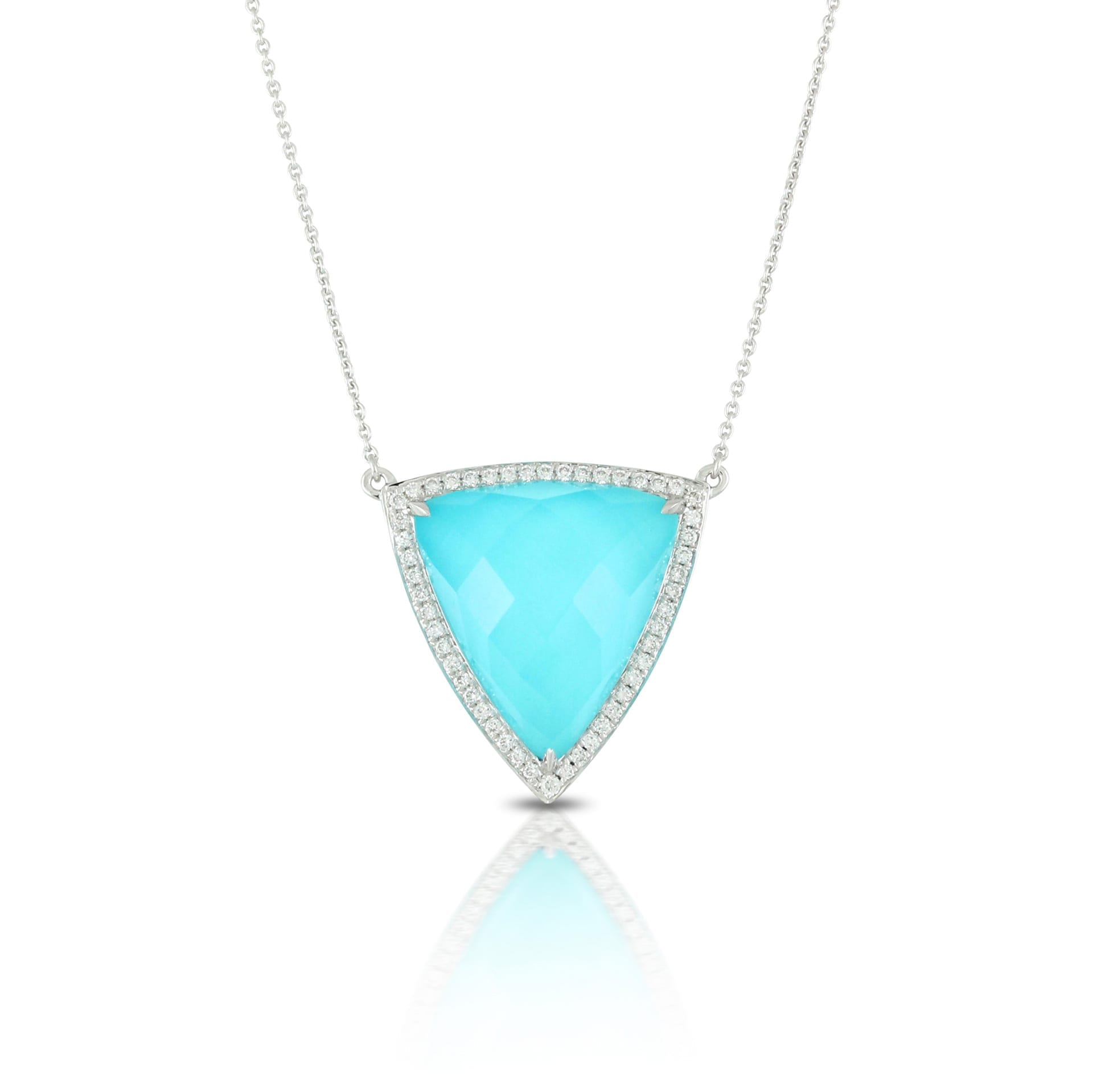 Shiny 18k White Gold Diamond Necklace With Clear Quartz Over Turqouise