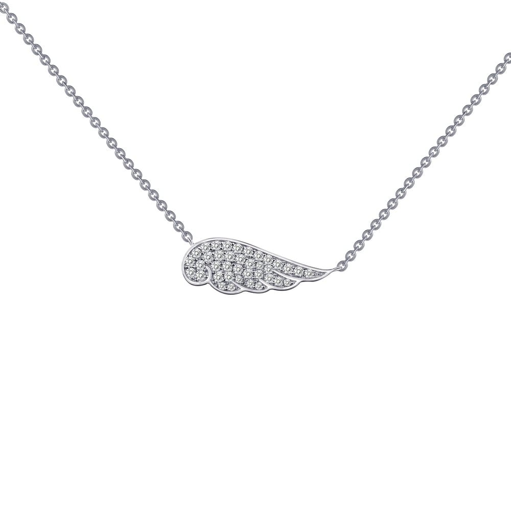 Simple yet charming necklace is set with simulated diamonds in sterling silver bonded with platinum