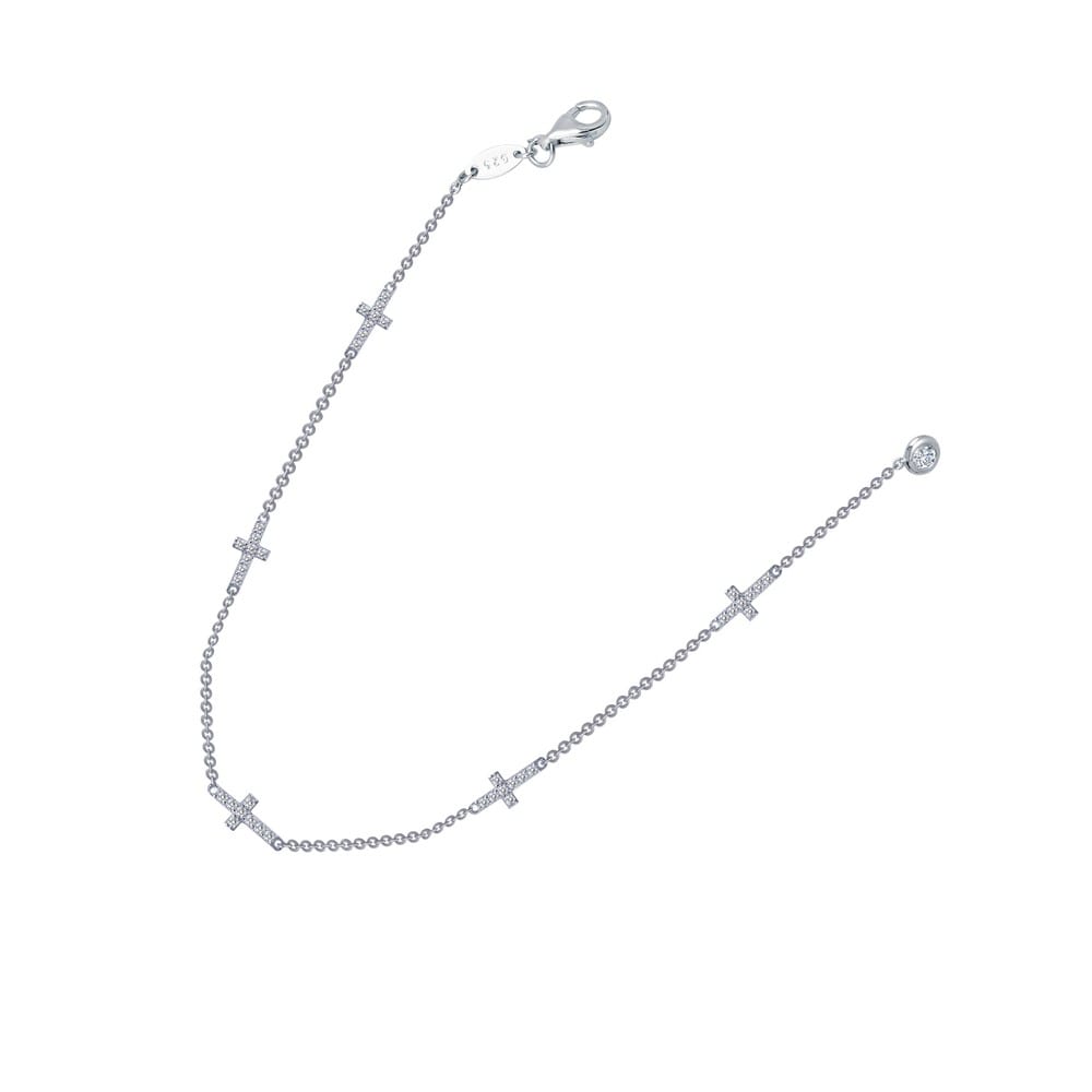 Simple yet sophisticated bracelet is set with simulated diamonds in sterling silver bonded with platinum