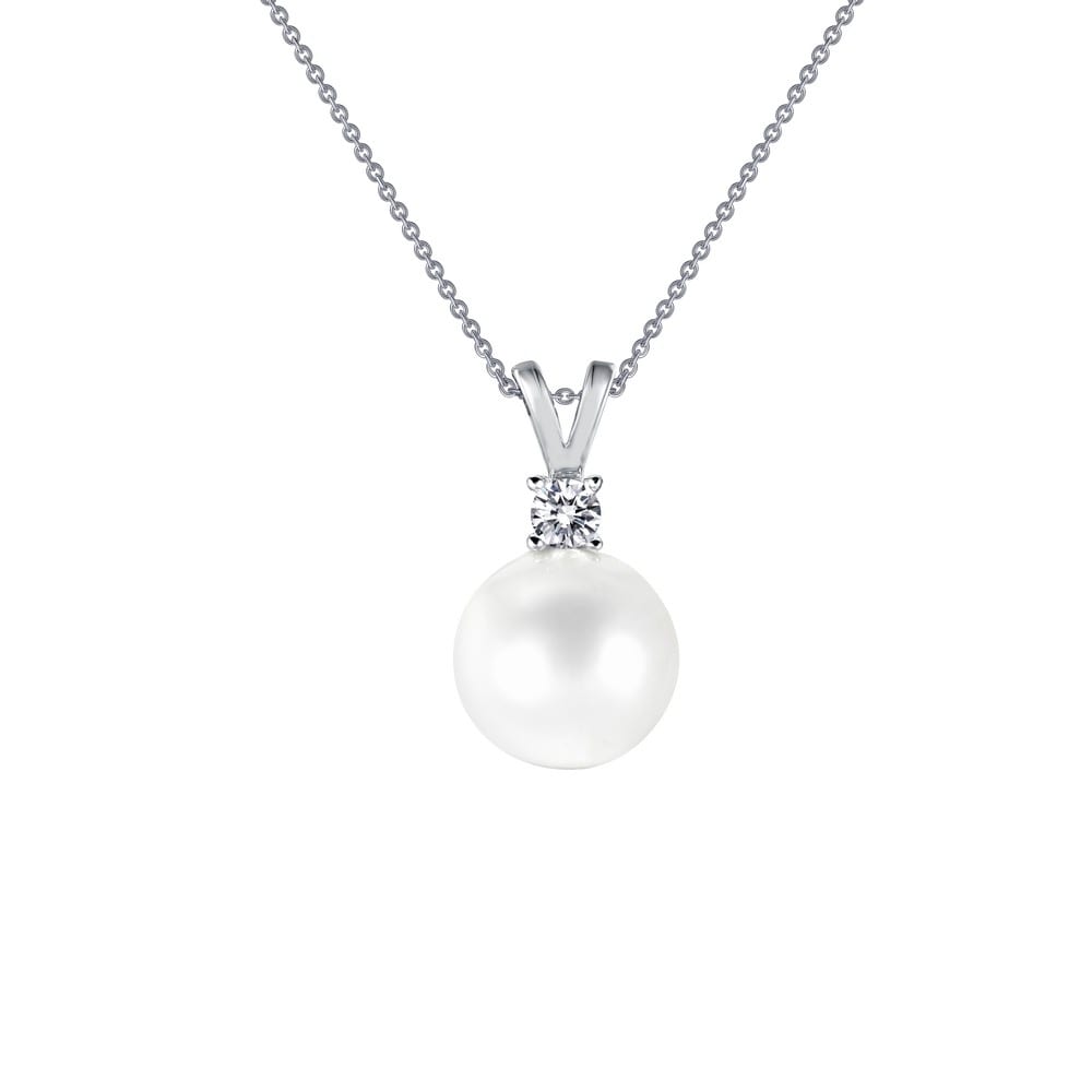 Simply beautiful lustrous fresh water pearl pendant shimmers with the addition of round-cut simulated diamond accent in sterling silver bonded with platinum The pendant comes on an adjustable 18 inch chain