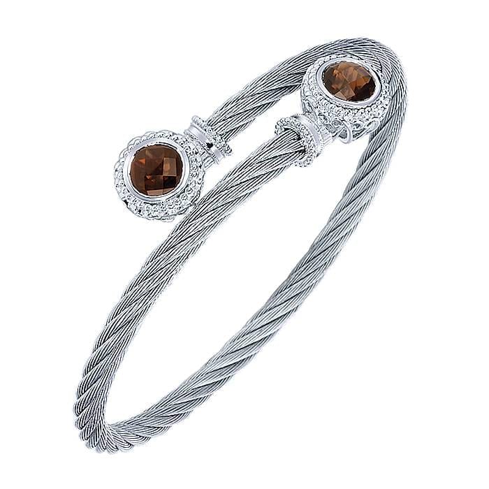 Smoky Quartz 925 Sterling Silver And Stainless Steel Round Twisted Cable Bangle