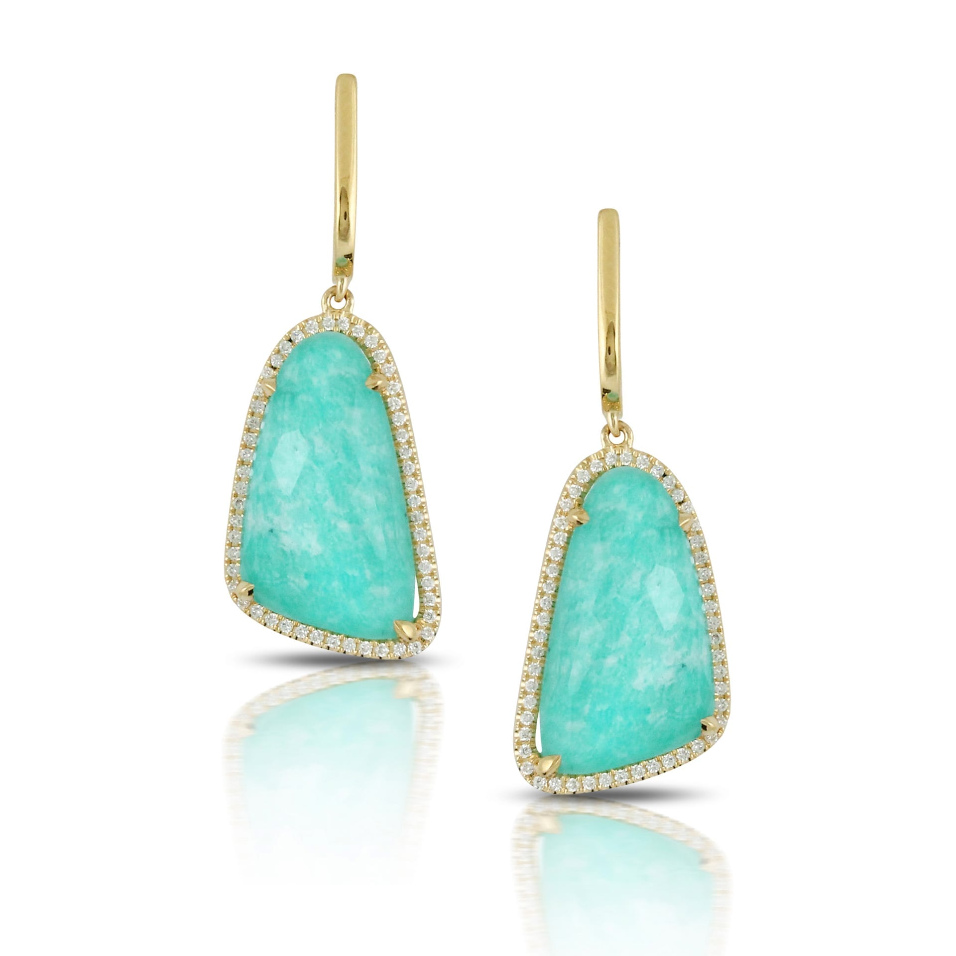 Soft Shaped 18k Yellow Gold Diamond Earrings With Clear Quartz Over Amazonite