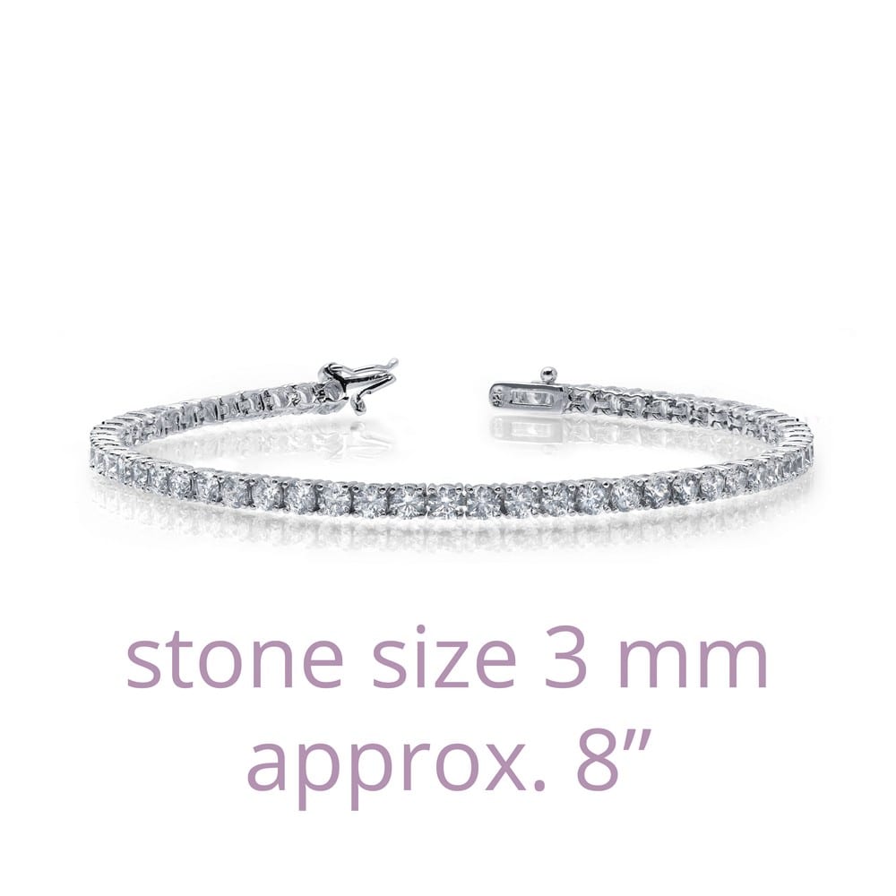 sparkly tennis bracelet is set with simulated diamonds in sterling silver bonded with platinum