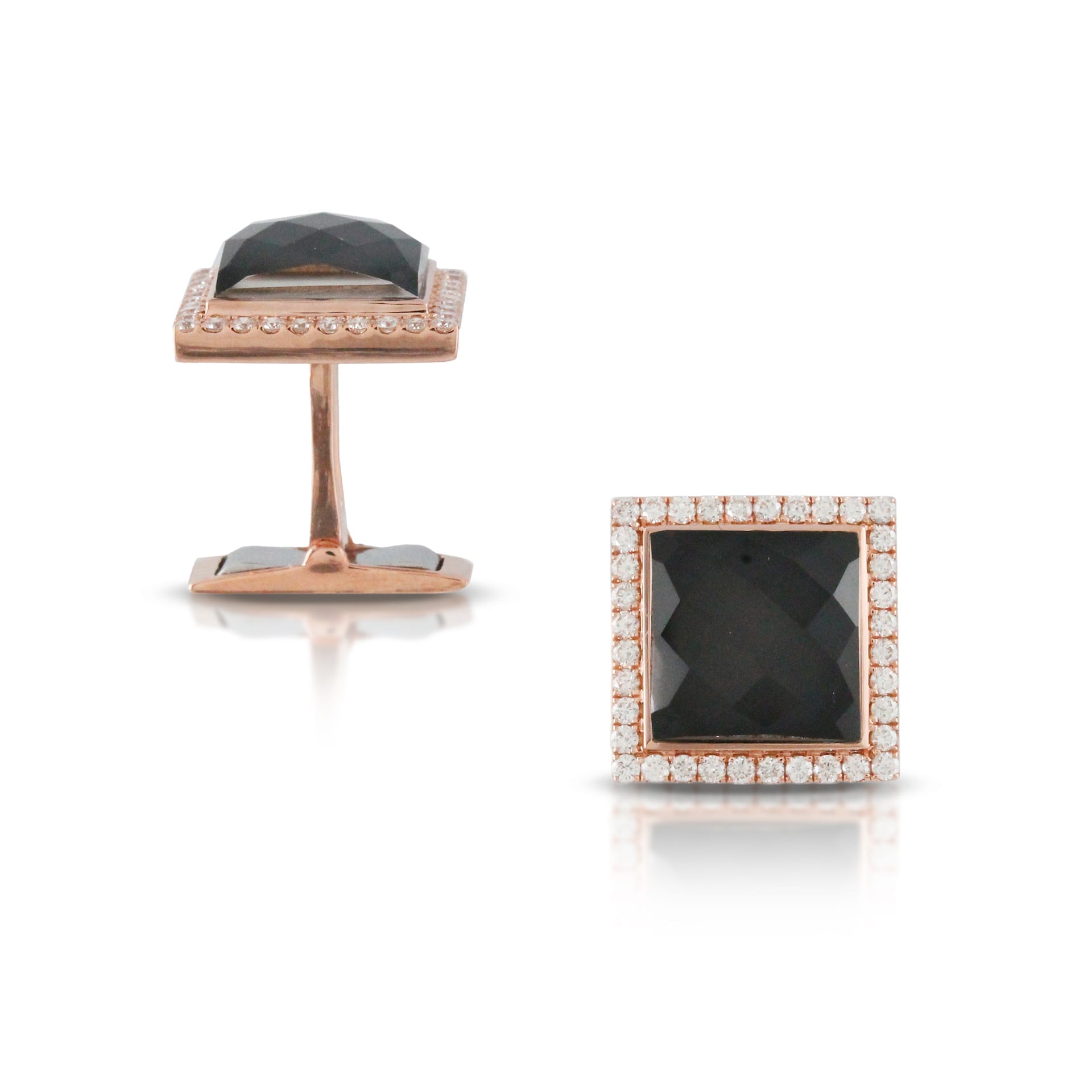 Square Clear Quartz Over Hematite With 18k Rose Gold And Diamond Halo Cufflinks