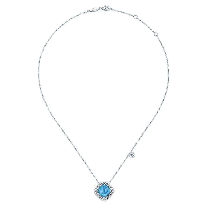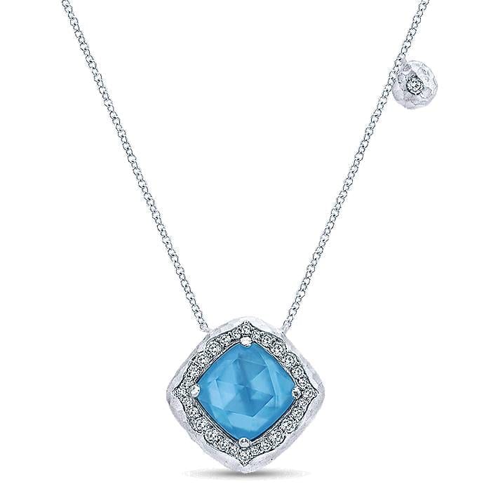 Striking Rotated Square Turquoise Rock Crystal Necklace in 925 Sterling Silver