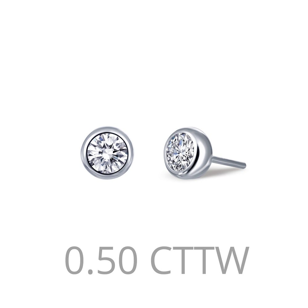 stud earrings are bezel-set with simulated diamonds in sterling silver bonded with platinum