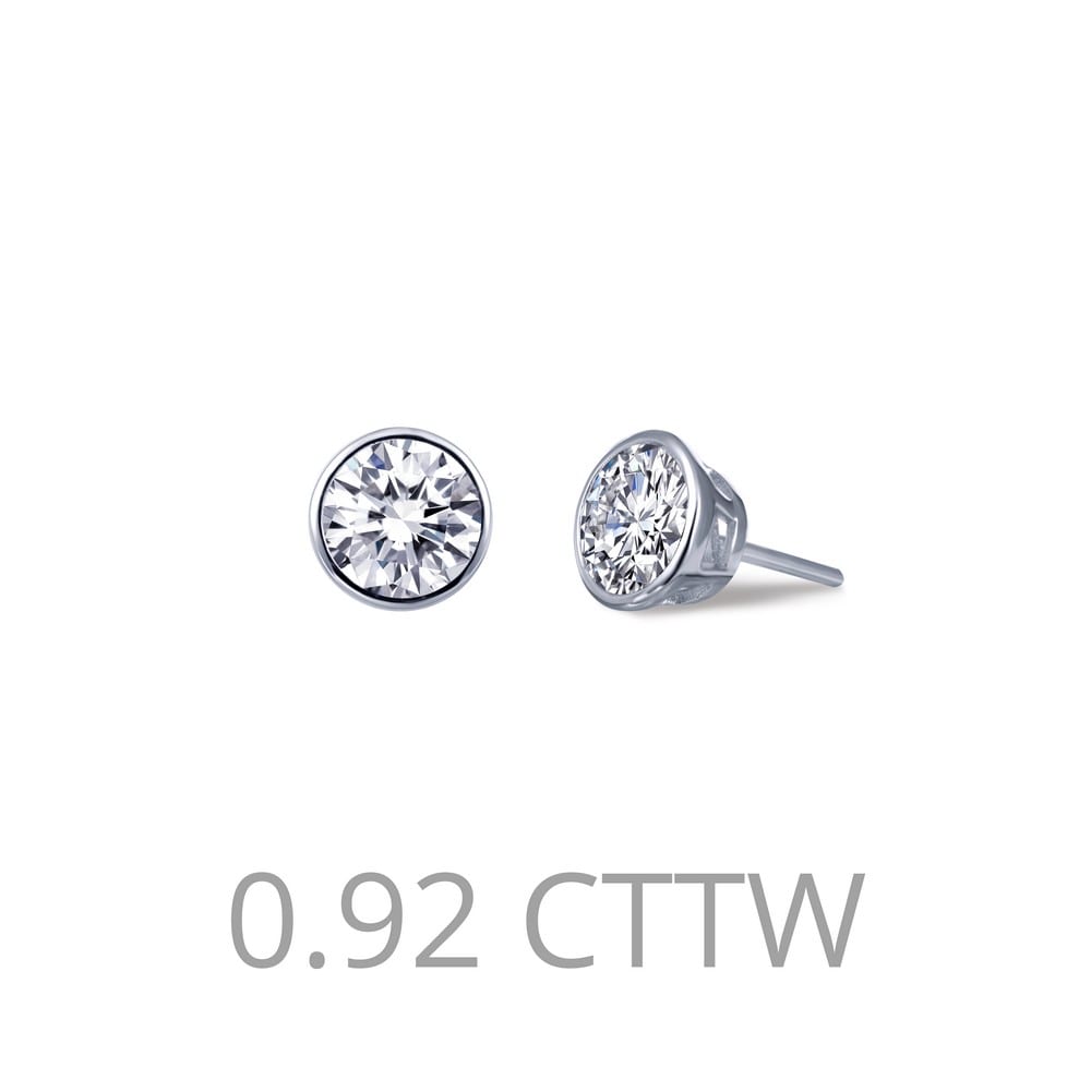 stud earrings are bezel-set with simulated diamonds in sterling silver bonded with platinum