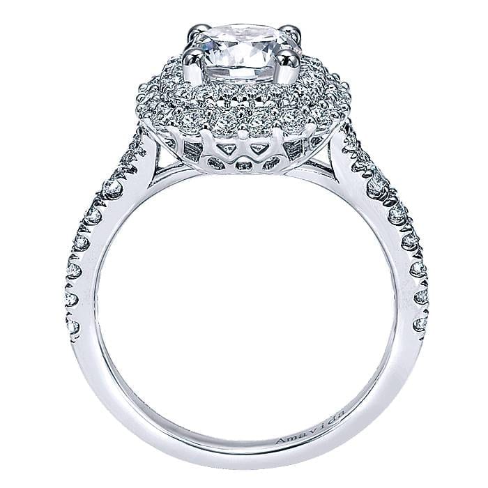 Stunning Double Halo and Diamond Adorned Band Crown Round Diamond in 18k White Gold Engagement Ring Setting