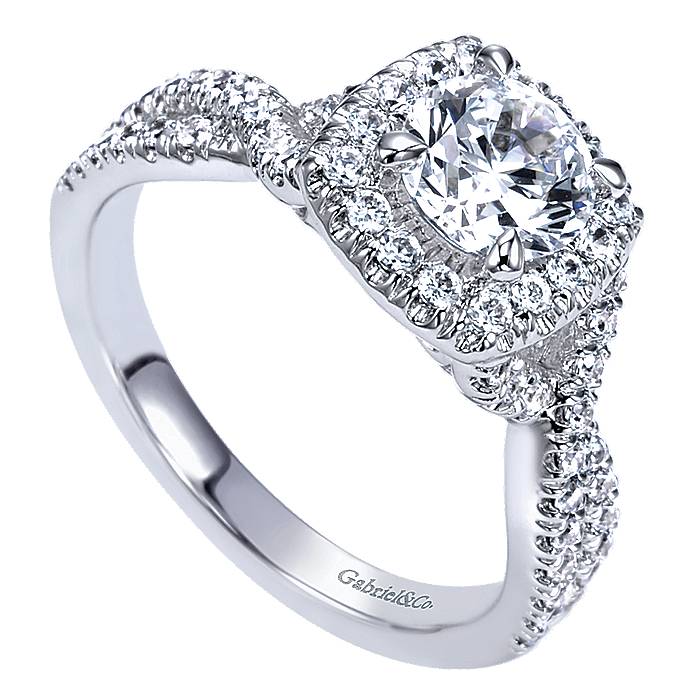 Swinging Bands of Diamonds With Halo on Designer Engagement Ring Setting in 14k White Gold