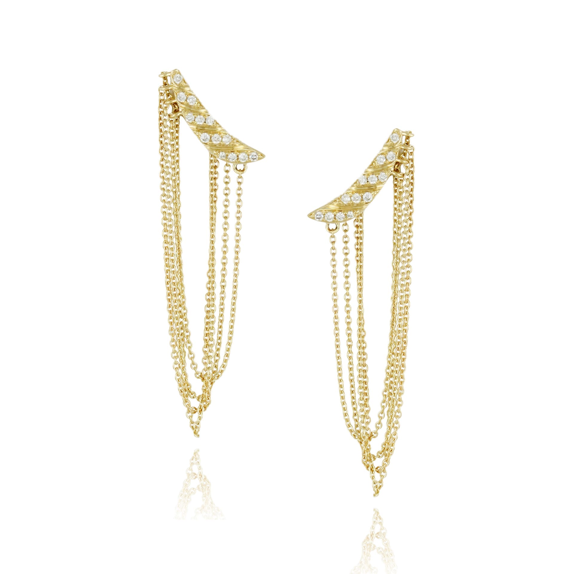 Swinging Chains of 18k Yellow Gold With Diamond Bars on Fluid Earrings