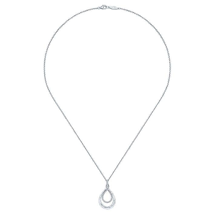 Teardrop Necklace Featuring Layered Strands of Hammered 925 Sterling Silver With Diamond Loop