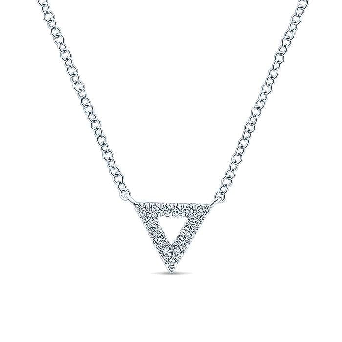 Triangle Pendant Outlined In Shimmering Pave Diamonds Delicate Edgy 14k White Gold Necklace