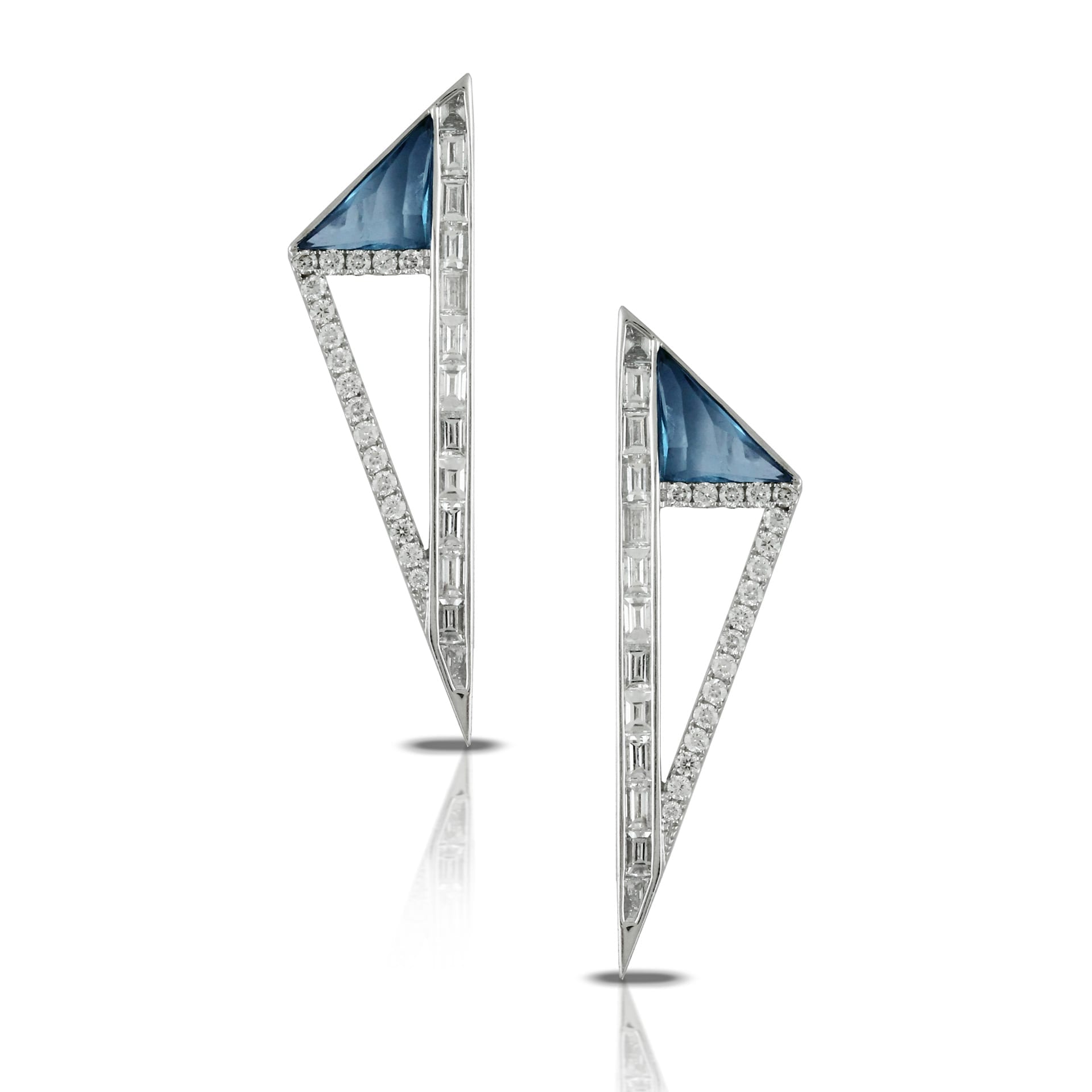 Triangular 18k White Gold Diamond Earring With London Blue Topaz