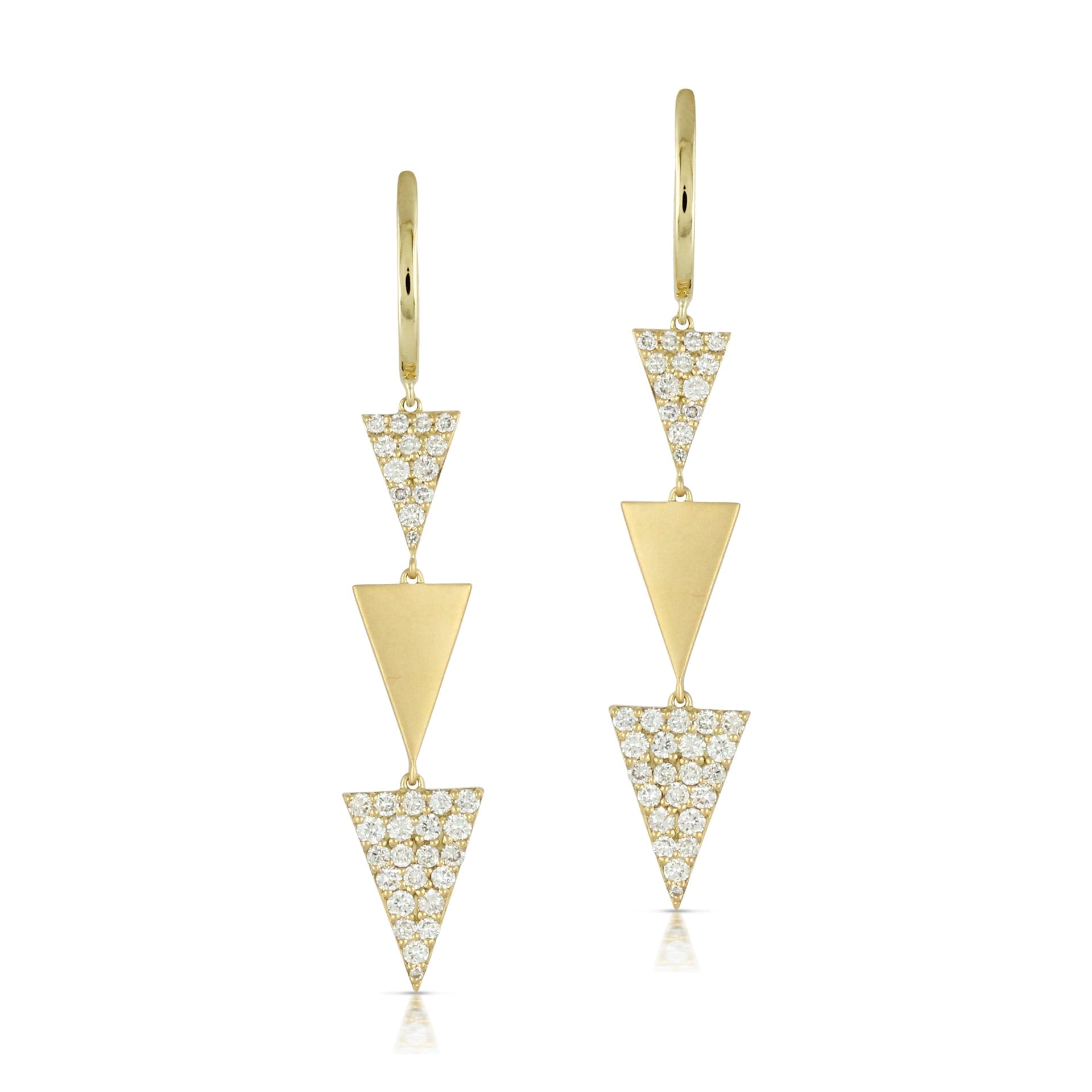 Triangular 18k Yellow Gold Diamond Earring In Satin Finish With A Hook Top