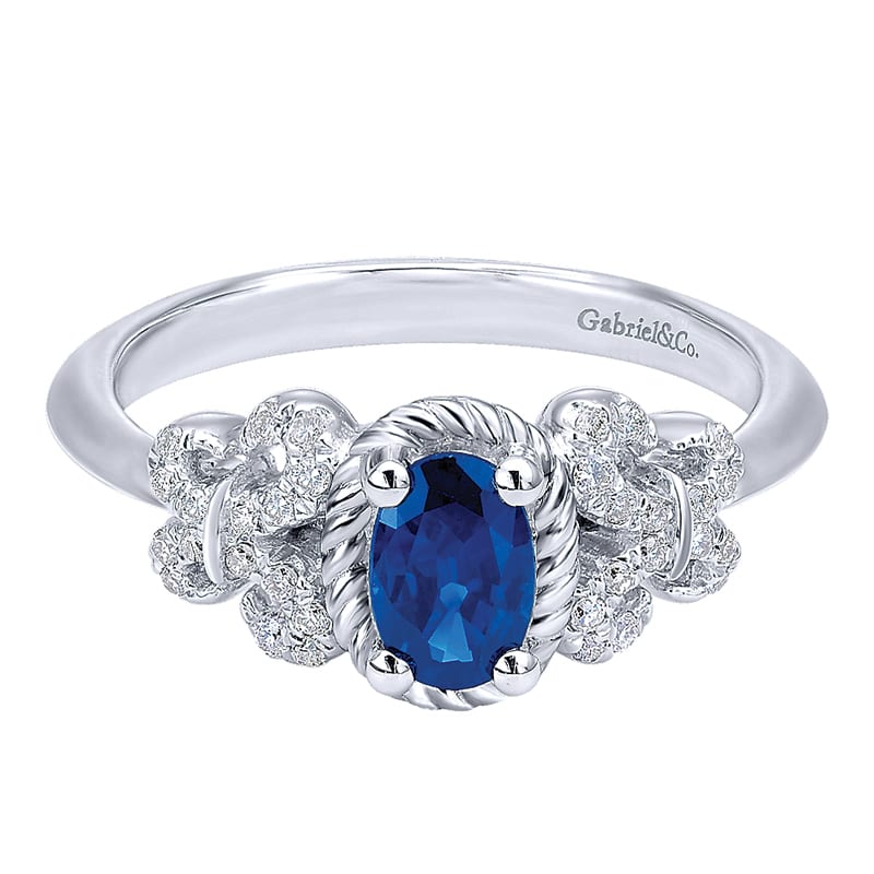 14k White Gold Diamond And Sapphire Stackable Ladies' Ring